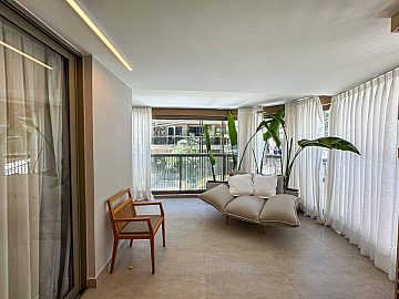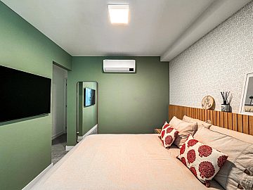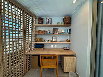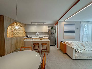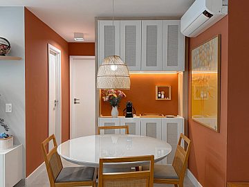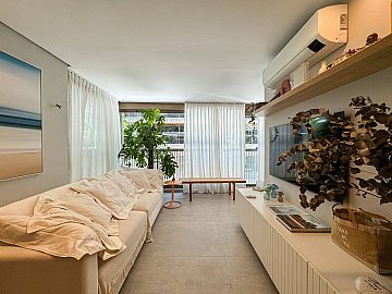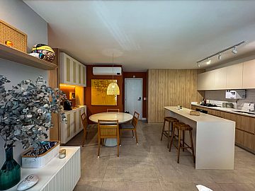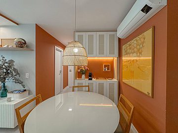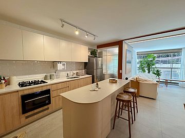 Apartamento decorado, com 108 m², sala ampla em dois ambientes com varanda integrada, 2 quartos (sendo 1 suíte com closet e varanda), cozinha americana planejada, área de serviço e vaga de garagem.